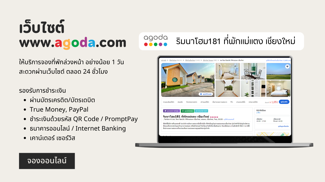 ที่พักอยู่ห่างจากตัวเมืองเชียงใหม่ ประมาณ 1 ชั่วโมงเท่านั้น